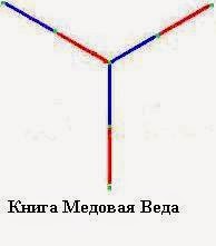 Далее, от точки пчела ведёт прямую линию. Это мужская веточка(левая, прохладная, синяя, электричество...), в ней мы сейчас и развиваемся. Это единица. Вторая единица появляющаяся из точки, будет женская веточка(правая, тёплая, красная, магнетизм...).